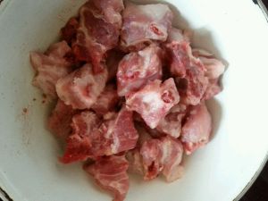 排骨洗干净,调入适量盐,生抽,米酒,白糖,玉米淀粉抓均匀,腌半小时左右,待用。