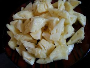 菠萝切小块状(不用淡盐水泡,泡过水的菠萝不甜,炒排骨味道不佳)