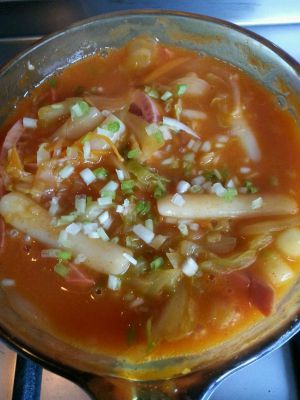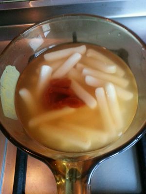 锅里放水,年糕,韩国辣椒酱(水只要浸没年糕就好)