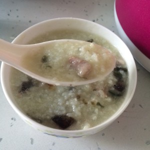 我做好的皮蛋瘦肉粥是这样的,哈哈