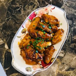 锅里倒油 小火炒冰糖 炒出糖色倒入腌制好的鸡翅 腌制的水倒掉 把鸡翅煎到两面金黄加老抽 生抽翻炒 后加入可乐 大火5分钟 小火10分钟 收汁即可 起锅撒上芝麻葱花