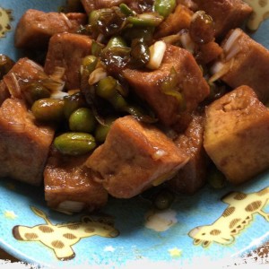 冰箱冷冻室取出毛豆和臭豆腐一起炒