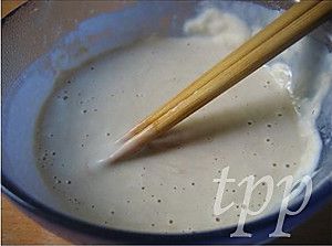 鸡蛋和面粉加少量盐,鸡精,胡椒粉调成糊