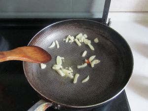 将锅烧热,倒入少量油,将大蒜片下入煸炒;