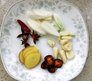葱姜蒜切片备用,辣椒,山楂,八角备用