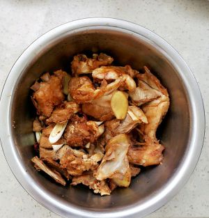 冷油加白糖适量,糖呈金黄色倒入羊排,大火翻炒5分钟,加生抽,料酒,盐少许。最后倒开水两杯,倒入高压锅。
