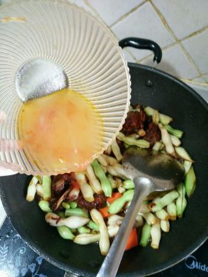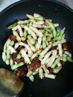 加入豆角翻炒