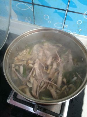 把材料全部放入锅内,加入适量水,一定要一次性加满,大火滚开后转小火,慢慢炖,我一般炖足一个钟头