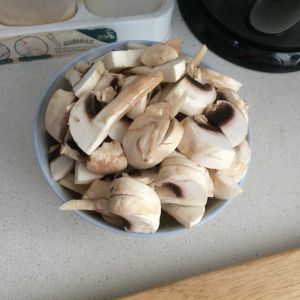首先买好口蘑洗净,切成途中的样子,我刀功几乎没有,非常差,相信你可以切的更好,哈哈