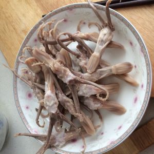 鸭舌头洗净,焯水,我一般焯水时,锅内也会放些葱段,达到去腥的效果,我一般焯一分钟