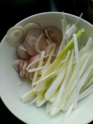 锅中倒入油,把葱和毛葱倒入锅中,用小火煸炒至有香味