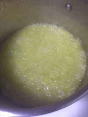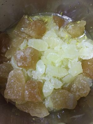 大火熬煮,熬煮到粘稠状态调成小火继续熬(熬煮的过程中要试一下味道,不够甜再加冰糖)