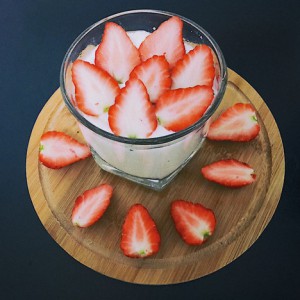 冷却后有一层奶皮浮在上面,沿奶皮边缘割一小口,10厘米左右,将碗中的牛奶倒入另外的容器。