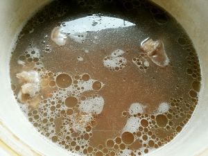 猪手剁块洗净,冷水入锅煮开去沫