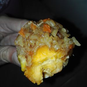 香喷喷的糯米蛋就出炉啦,剥掉锡纸,稍微凉一点就可以吃了。