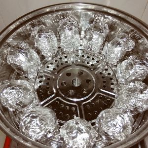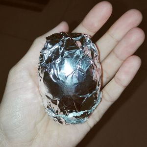 填好糯米料的蛋用锡纸包好,只包一层就可以了。
