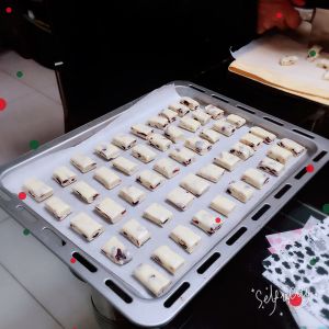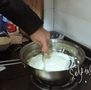 棉花糖和黄油充分融化后,倒入奶粉,使奶粉和前两者融合后(这一步一定要动作快,因为韧性好足,手会很酸的)再倒入花生碎和蔓越莓,搅拌,出锅!