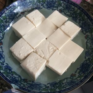 豆腐切成方块放入锅中蒸,大约十分钟。