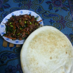 热油炒肉丝,加生抽、加白糖、好后盛出备用,下油炒胡萝卜,青椒,然后加入炒好的肉丝,放入盐,味精,炒好装盘