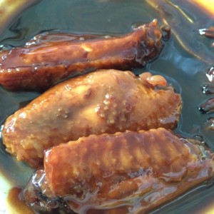 锅中少放一点油,将鸡翅煎至表面金黄。姜片、八角放入锅中,煸炒出香味,把可乐倒入锅中没过鸡翅,加老抽、生抽、盐。