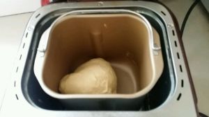 所有材料放面包机里(黄油除外),揉均匀后加入黄油揉至扩展阶段