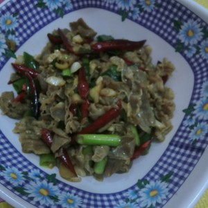1 准备好葱段 姜末 蒜末 辣椒丝 一汤勺耗油 备用