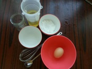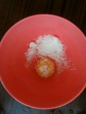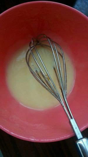 打发后少量加油,一次一勺,加入一半油后开始加入醋,醋每次少放,5次一放即可
