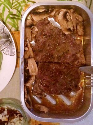 2,烤箱预热200度,放入牛排。6成熟大约入烤箱15分钟。