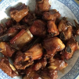 倒入一勺(15ml量勺)料酒,沿着锅边倒入,然后倒入2勺酱油(我放的2勺生抽,还加了一点点老抽上色),3勺醋(我用的镇江香醋),2.5勺白糖(我觉得这个糖量适合我家的口味,喜欢甜的可以多放点),之后加水,水量没过排骨,中火煮。我碰到一次排骨太老,加了很多水才煮烂。水量视排骨嫩老而定。
