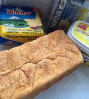 准备材料…没有找到吐司或者厚切方包…用金砖面包代替…