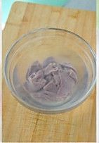把浸泡好的猪肝用流动水冲洗一遍,沥干,放料酒,少许盐和淀粉抓匀腌制备用。
