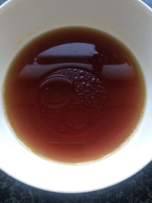 这个时候可以调汁了,把一品鲜加少量的水,使颜色变淡,然后加入香油