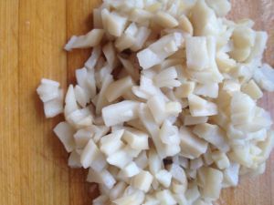 把杏鲍菇切成片,开水烫一遍,切成小块备用