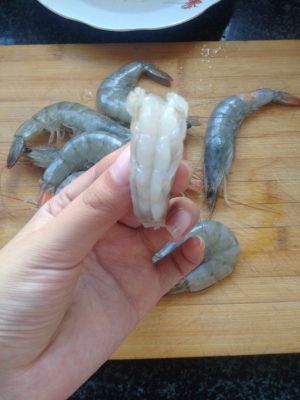 剥虾皮,从背部切开把虾线挑干净,口感好也美观~