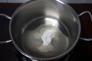 小火加热至砂糖完全融化,开始冒泡,期间不需要搅拌。