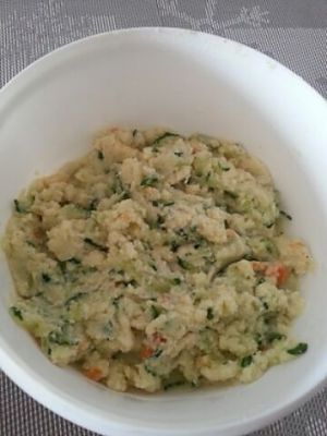 油锅加热放入葱花(我家今天没有葱了,所以没放),放入黄瓜丝、胡萝卜丝(如果有白菜叶也可以)炒一下捞出
