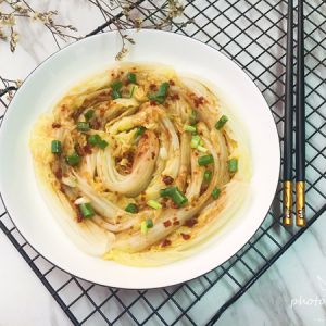 娃娃菜摆盘,放入葱花