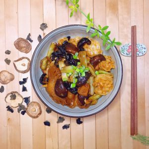 首先将藕粉 木耳 香菇泡发 香菇水备用 将魔芋丝洗干净 芸豆洗净掰成小段