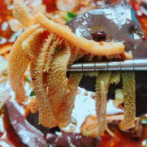捞起杂菜之后,在水里加入料酒和生姜,放入牛百叶等牛杂煮熟捞出备用
