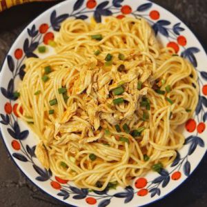 酱汁淋一勺在面条上,搅拌均匀后拌入刚刚拌好的鸡丝,即可食用啦。这一步是为了让面条更入味,也可以省略。