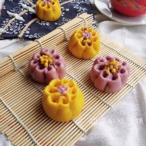 完成后就变成了8个花瓣,然后在中间放上豆沙馅。