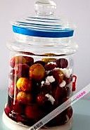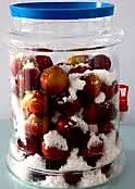 将切好十字刀的李子铺在罐子里,一层李子一层绵白糖