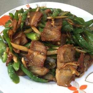 把辣椒倒进去炒几分钟放盐鸡精就可以出锅了。(补充下,辣椒我提前干煸了下,就是热锅把辣椒放进去,再放半勺盐来回炒蔫,盛出来。这样没有辣椒的生味儿,又让辣椒很香,不过这样辣椒会很辣)