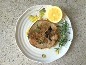 烤好后撒上一些迷迭香和刚才切出的柠檬块,鱼鲜味、胡椒味,融合着迷迭香幽微的香气,怎么能不大快朵颐?