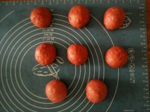 面团平均分割成8等份,用保鲜膜盖上,醒十五分钟