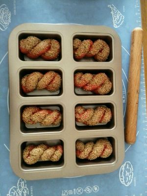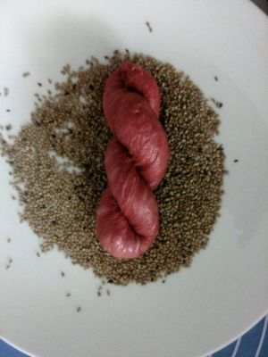 用手把两头反方向搓,掂起两头对到一起,形成麻花形,接口处捏紧