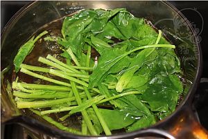 用水煮焯一下菠菜,锅中放点盐和食用油。这样煮出的菠菜颜色漂亮些。