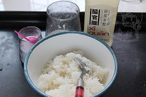 超市里也有配好味的寿司醋,用寿司醋的话就不用加盐和糖了。