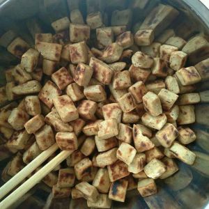 锅烧热,不加油,直接放入面豆豆炒,轻轻翻,小心碎