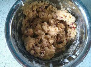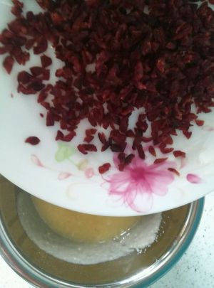 加入蔓越莓碎搅拌均匀。